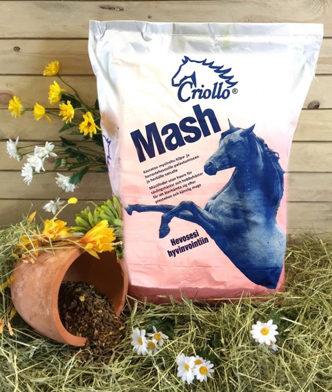 Criollo Mash on tarkkaan Suomen olosuhteisiin ja suomalaisen maaperän mukaan suunniteltu kauraton, runsaskuituinen, vähähiilihydraattinen myslirehu kilpa- ja harrastehevosille.